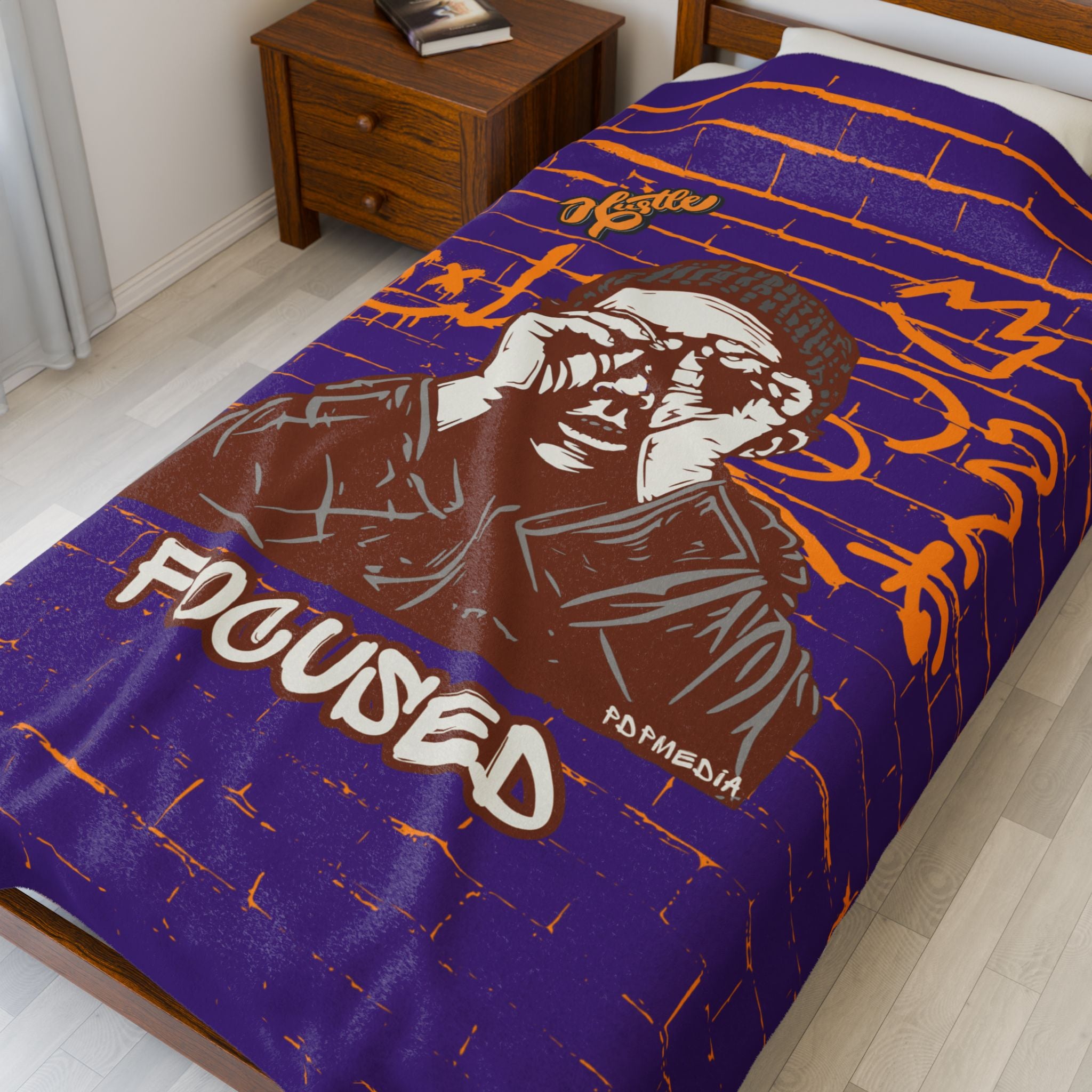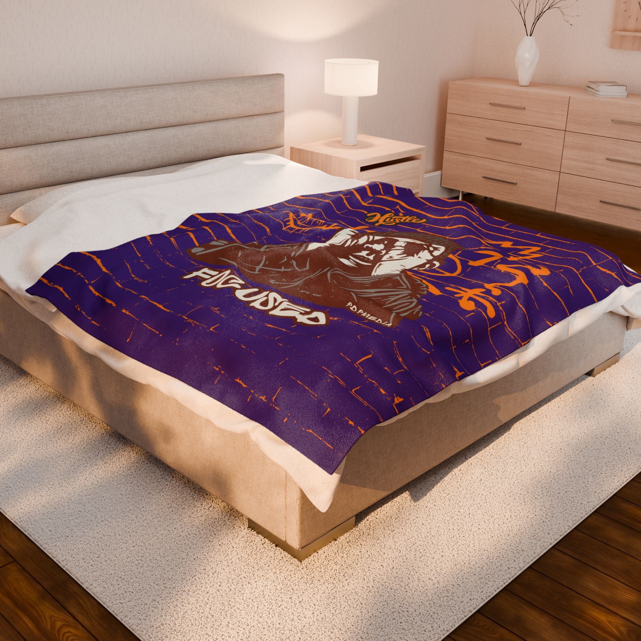 Stay warm and cozy with this velveteen plush blanket featuring the word 'hustle.' This blanket is designed to inspire and encourage the owner to keep pushing forward and never give up on their dreams. Perfect for those who need a little extra motivation during chilly nights or lazy days at home. Ideal for entrepreneurs, students, or anyone working towards a goal. This blanket is perfect for birthdays, graduations, or any occasion where someone needs a boost of encouragement.