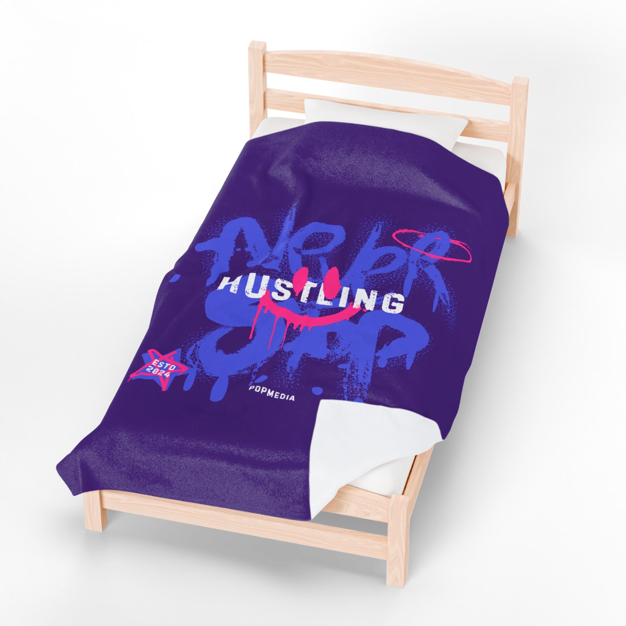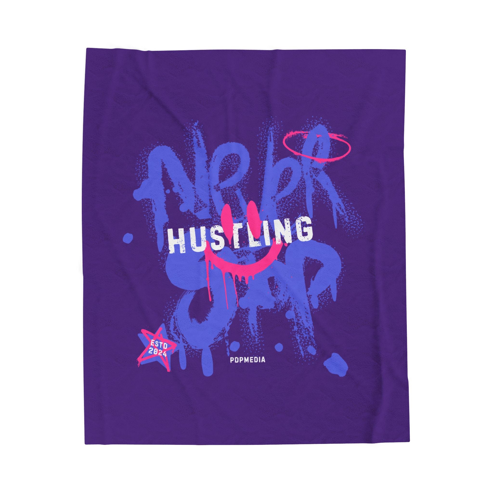 Stay warm and cozy with this velveteen plush blanket featuring the word 'hustle.' This blanket is designed to inspire and encourage the owner to keep pushing forward and never give up on their dreams. Perfect for those who need a little extra motivation during chilly nights or lazy days at home. Ideal for entrepreneurs, students, or anyone working towards a goal. This blanket is perfect for birthdays, graduations, or any occasion where someone needs a boost of encouragement.